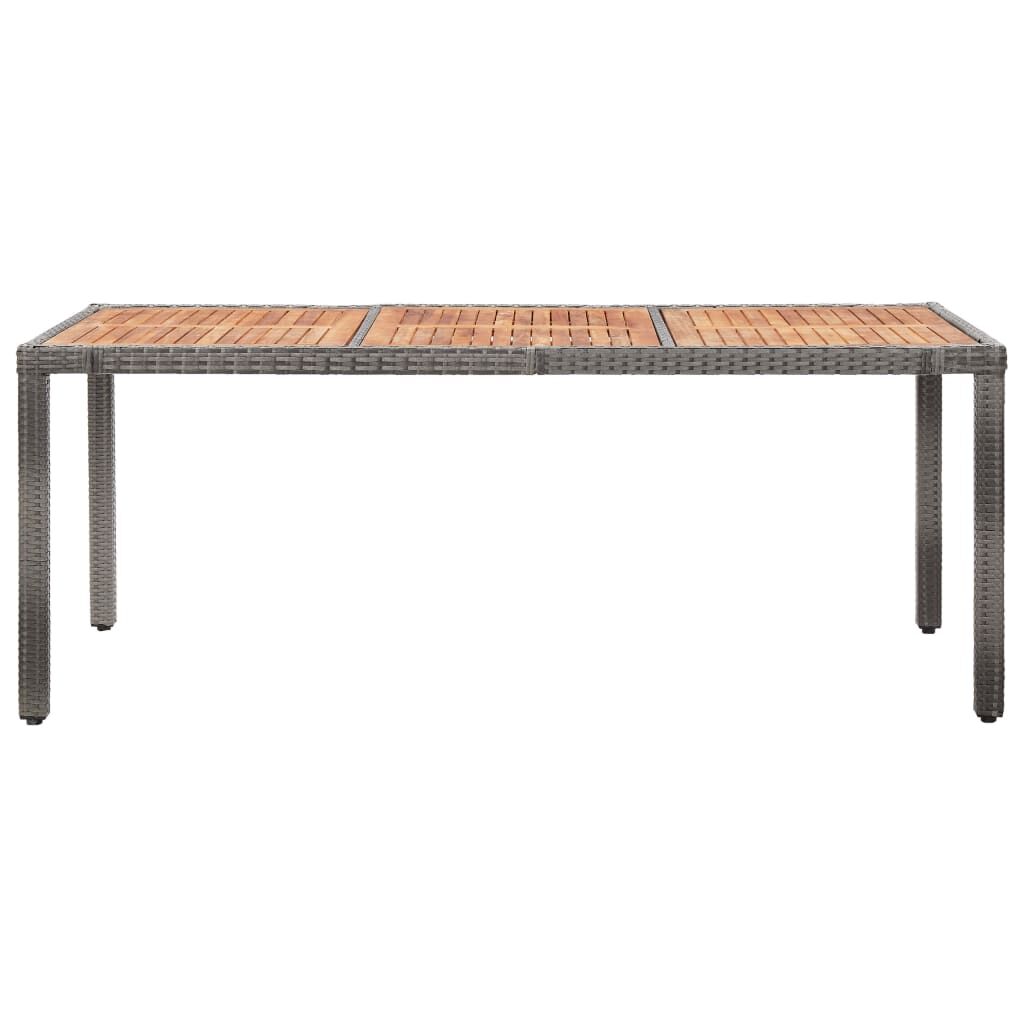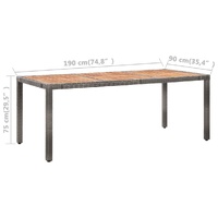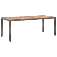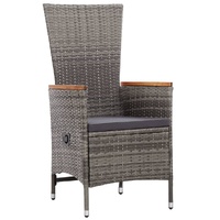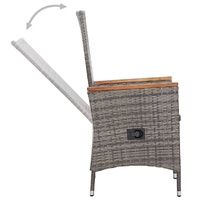 Our stylish poly rattan garden furniture set will become the focal point of your garden or patio! This rattan dining set has an elegant, contemporary design and will be a great choice for al fresco dining or relaxing in the garden. Made of weather- and water-resistant PE rattan, the dining set is easy to clean, hard-wearing and suitable for daily use. The powder-coated steel frames make the table and chairs strong and sturdy. The tabletop and the armrests are made of acacia wood, a tropical hard wood, which will bring a rustic charm. 2 of the 8 chairs are reclining chairs thanks to the adjustable back. By touching the button on the side, the backrest will recline. Thanks to their lightweight construction, all items are easy to move. The thick, soft, foam-filled seat cushions are highly comfortable and made of water-repellent polyester. The cushion covers with zips can be easily removed and washed. This garden furniture set includes 1 table, 8 high back chairs and 8 cushions. Note: We recommend covering the set in the rain, snow and frost.
