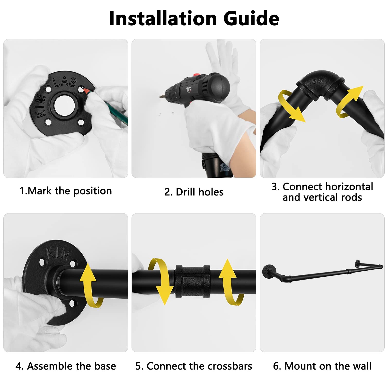 Made of black strong cast iron pipes, solid and durable for long-term use. It can holds a good amount of clothes and keeps your garments and accessories always organized and tidy.