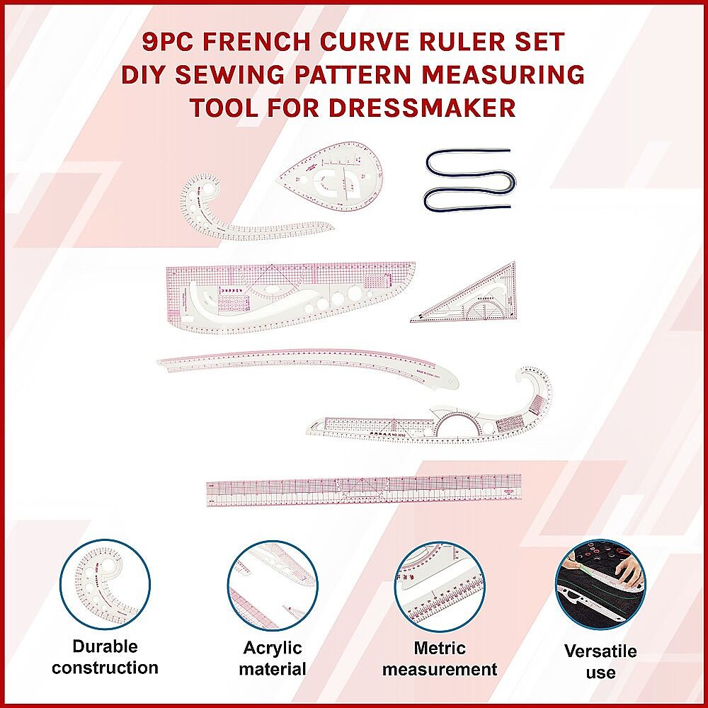 $31.95Accurate measuring is at the heart of good dressmaking, which is why the Randy Travis Machinery 9pc French Curve Ruler Set is such a great addition to every sewing box. Constructed from durable, transparent acrylic, there's a ruler included that can accurately measure almost any curve or shape. Ideal as an aid to cutting armholes, yokes and necklines correctly, these rulers also work well when measuring the gusset of trousers, calculating fabric requirements for tailored clothing and ensuring accurate measurement when completing craft projects.