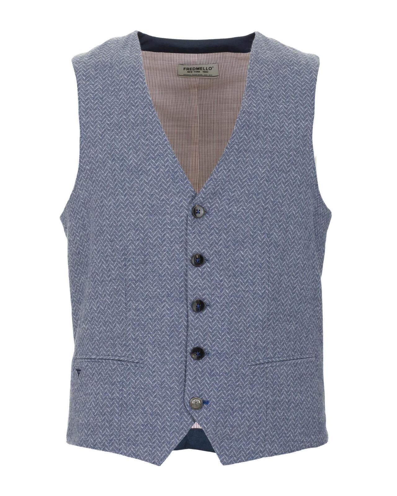 Abstract Motif Stitched Cotton Vest with Button Closure