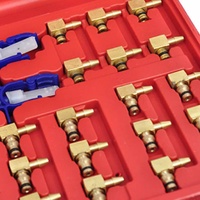 This is an adapter kit for common rail tester for measuring the amounts of common rail return flow. This tool kit contains 24 adapters for different injector manufacturers such as: Bosch, Siemens, Delphi and Denso. There are 6 adapters for each injector brand.