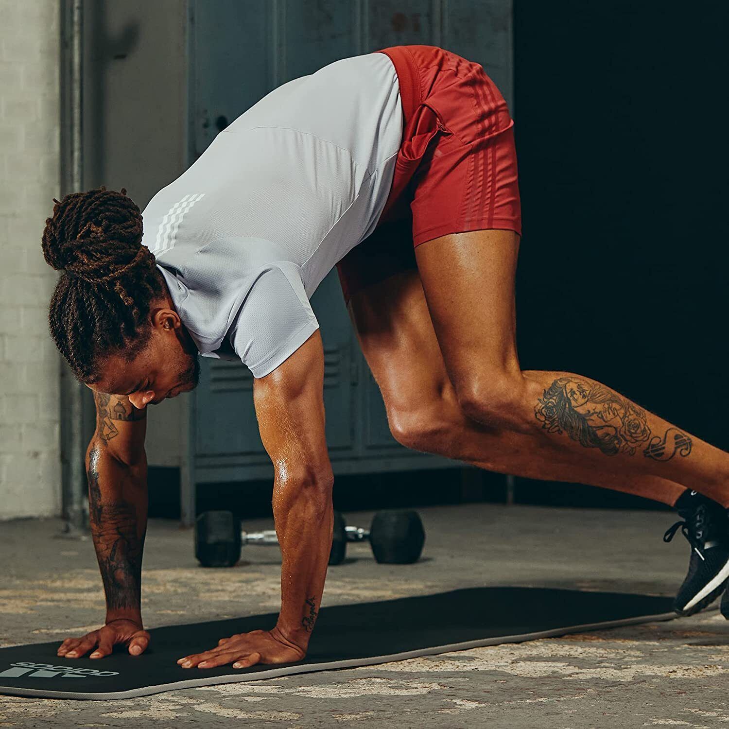 $100.5710 mm thick, the Adidas training mat has full padding for extra comfort whilst you train. The cushioned mat reduces pressure on the joints whilst closed cell technology minimises moisture absorption; keeping the mat fresh and reducing irritation.