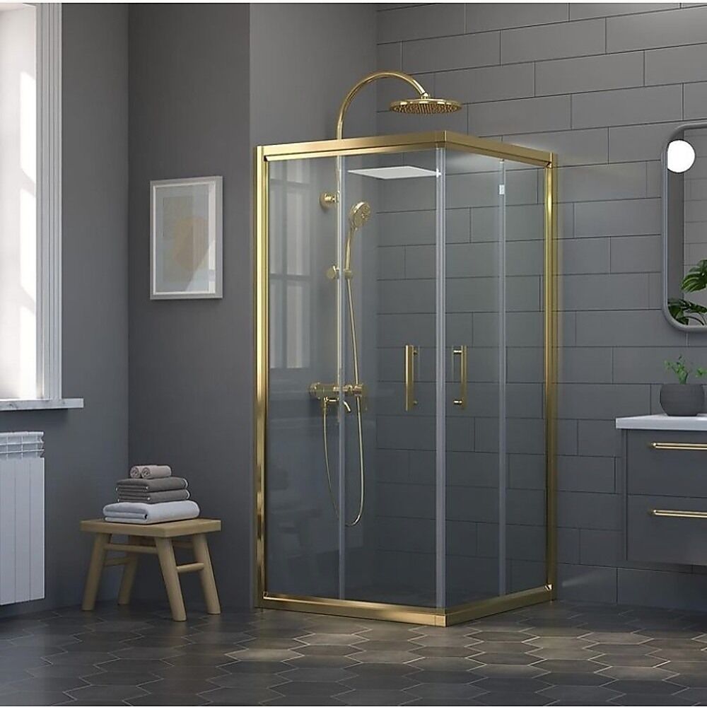 Adjustable 1200x900mm Double Sliding Door Glass Shower Screen in Gold
