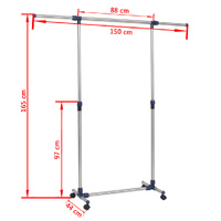 This adjustable clothes rack is an ideal storage solution for the bedroom or bathroom with its minimalistic design. It has a tubular stainless steel frame, which is lightweight yet sturdy and durable. Thanks to its design featuring adjustable length and height, you can hang almost every garment on this clothes rack. It is equipped with four castors, which make it easy to move around in your room. Assembly is easy.