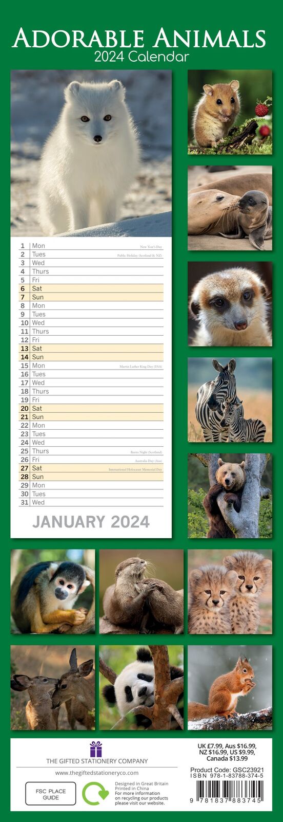 Adorable Animals 2024 Slimline Slim Wall Calendar Hanging Planner New Year Gift