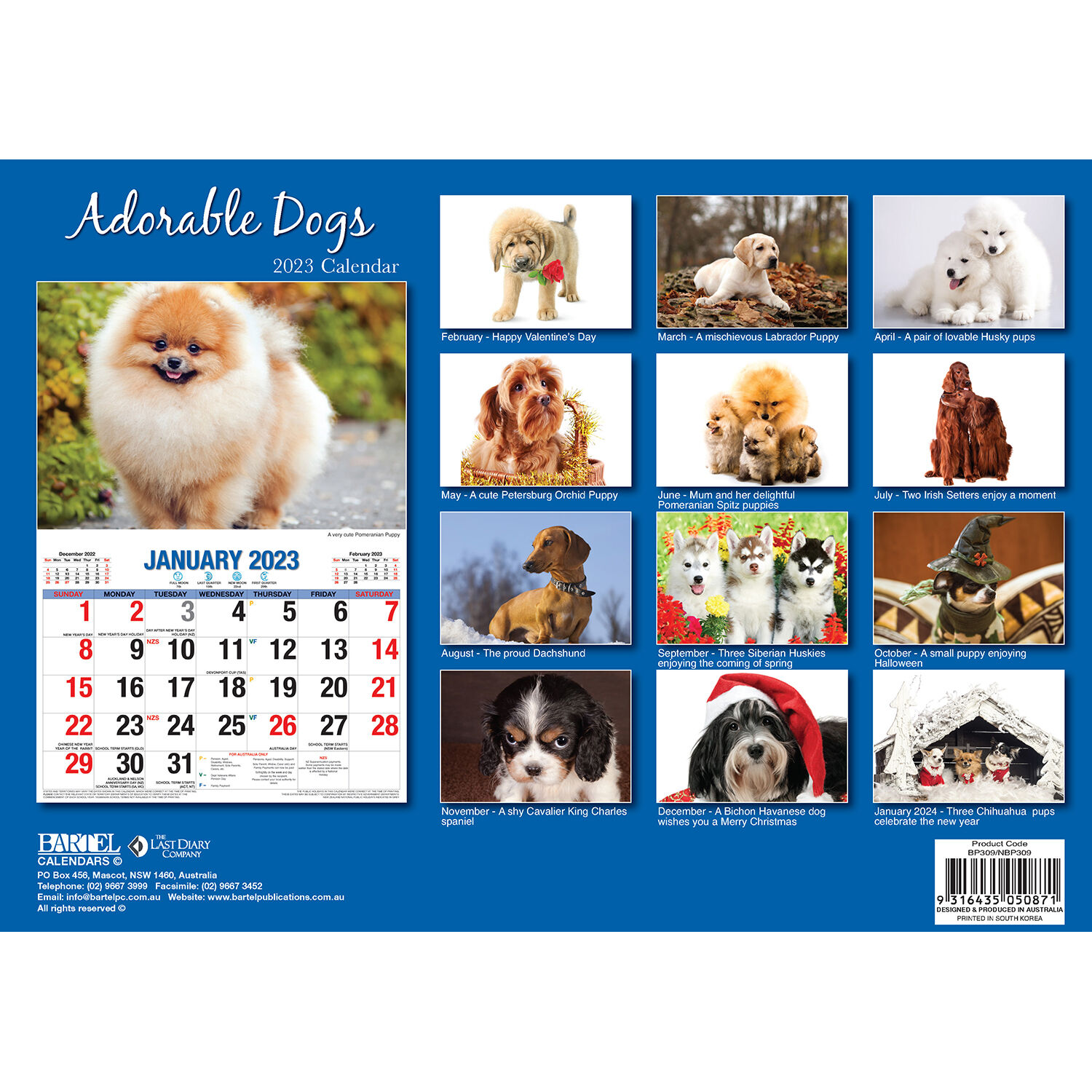 Adorable Dogs – 2023 Rectangle Wall Calendar 16 Months Planner New Year Gift