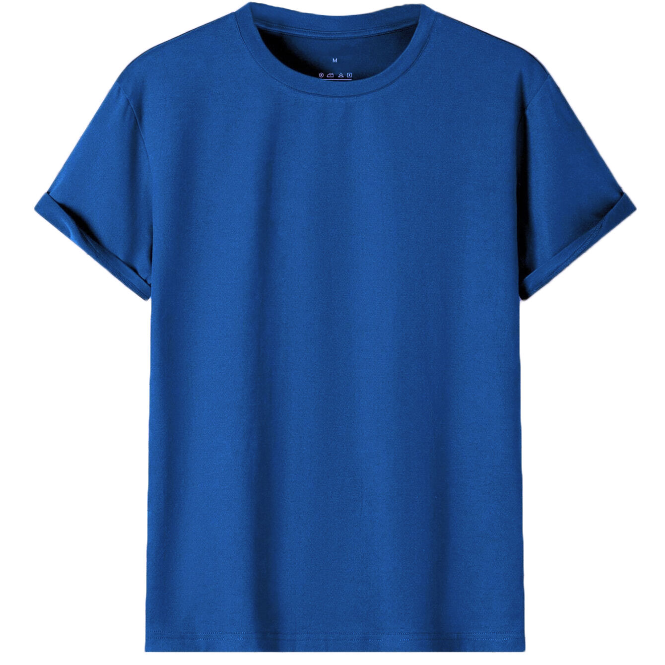Adult 100% Cotton T-Shirt Unisex Men's Basic Plain Blank Crew Tee Tops Shirts, Royal Blue