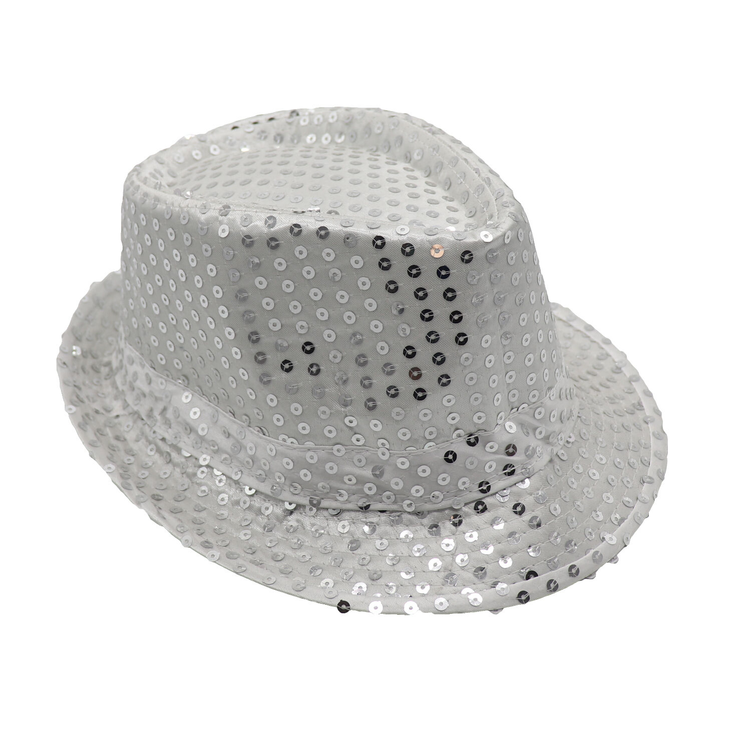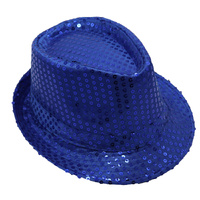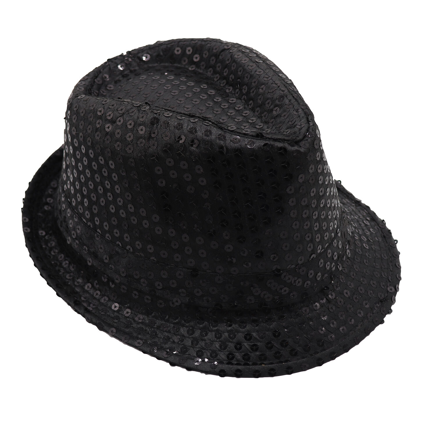 Adults Kids Unisex Sequin Fedora Hat Dance Cap Solid Jazz Party Glitter Costume