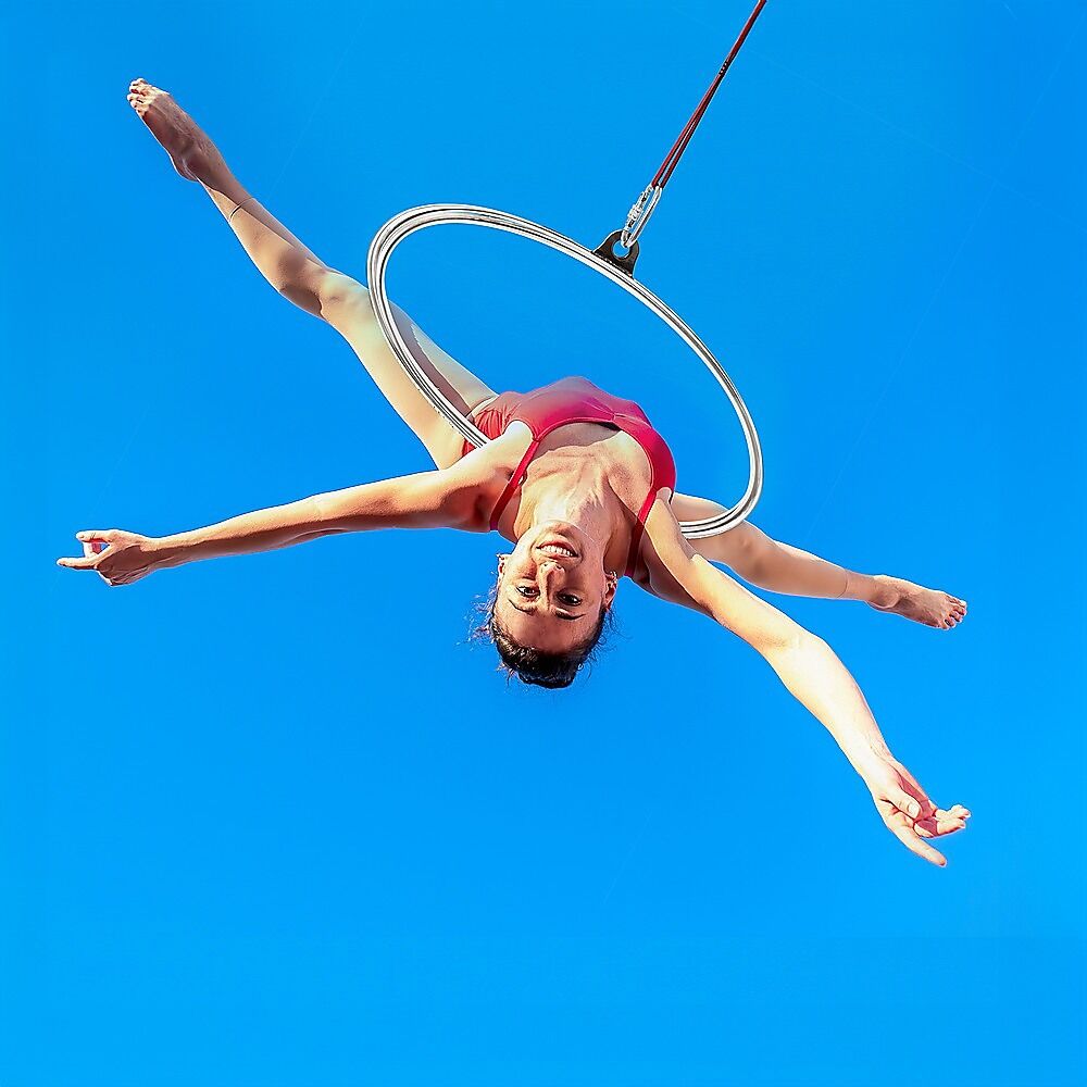 The aerial hoop comes with everything necessary to fix it securely in place and is nylon-coated for additional comfort.