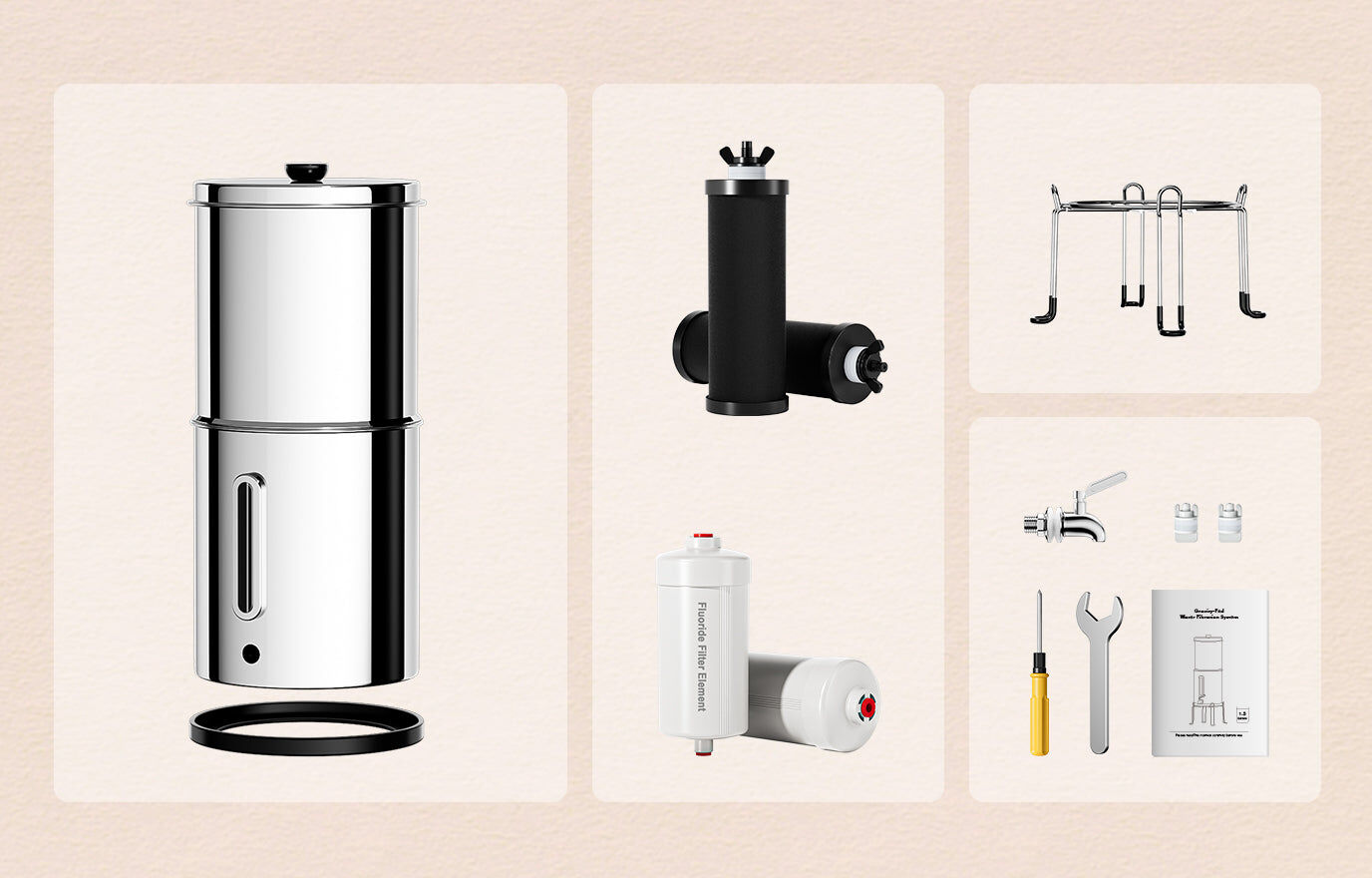 This gravity water filtration system effectively makes water from unreliable sources drinkable at a lower cost. It requires no additional tools and operates automatically, providing healthy, pure water from any source like tap water.