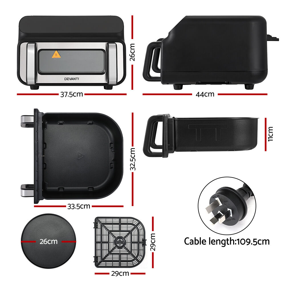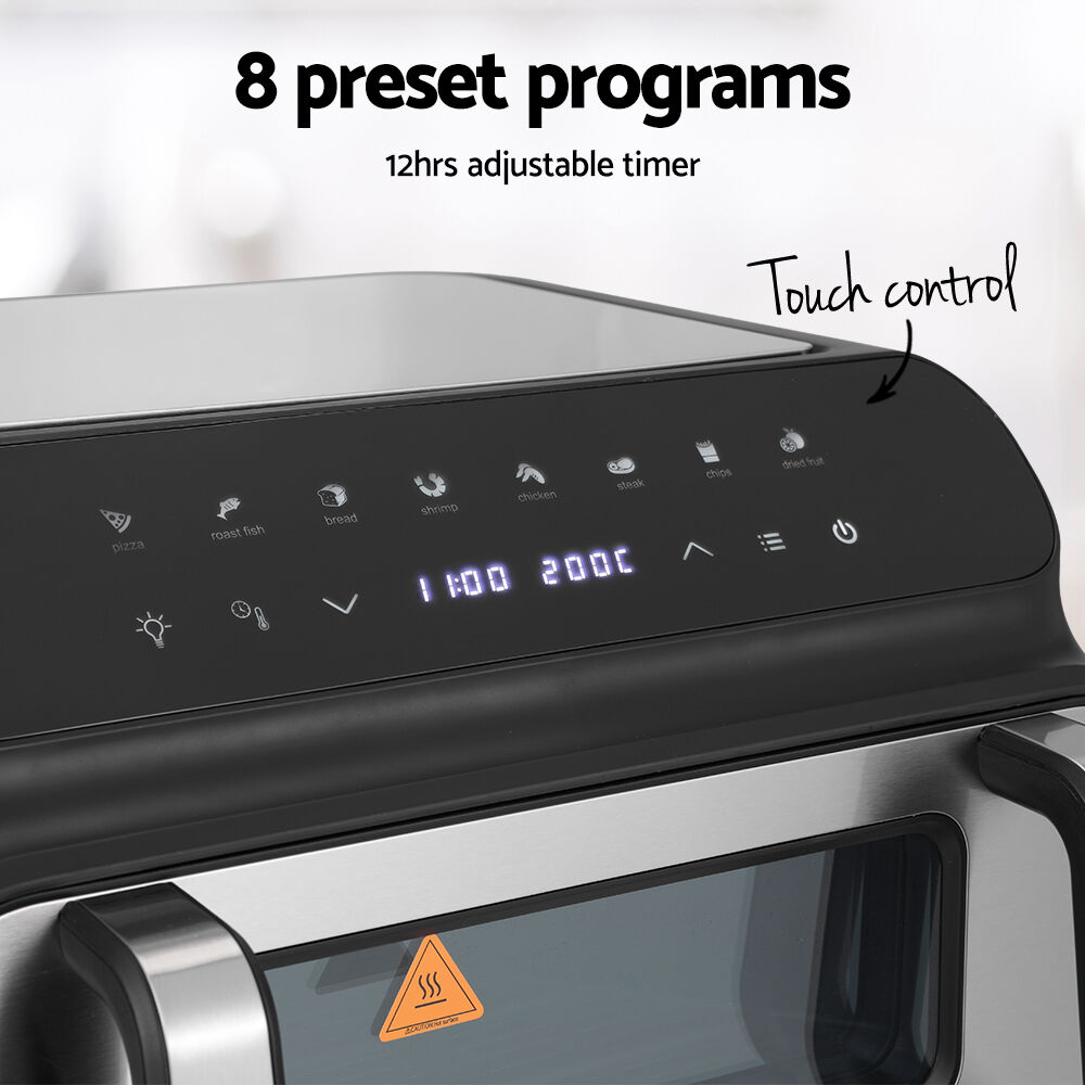 $111.85Conquer your culinary cravings with this versatile Devanti air fryer! Boasting a spacious 10L capacity, it's perfect for families or whipping up large batches. Choose from 8 pre-programmed settings or customise your cooking with the adjustable temperature and 12-hour timer. The intuitive LCD touch panel makes operation a breeze, while the 360� air circulation ensures even cooking and crispy results. Monitor your food effortlessly through the tempered glass window. Safety is a priority with the cool-touch handle, heat shield vent, and non-slip feet. Plus, enjoy guilt-free indulgence � this air fryer uses 80% less fat than traditional deep-frying! The included rectangular frying basket, baking tray, and 12-inch pizza pan provide endless cooking possibilities, making this air fryer a must-have for any kitchen.