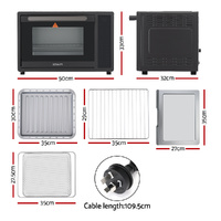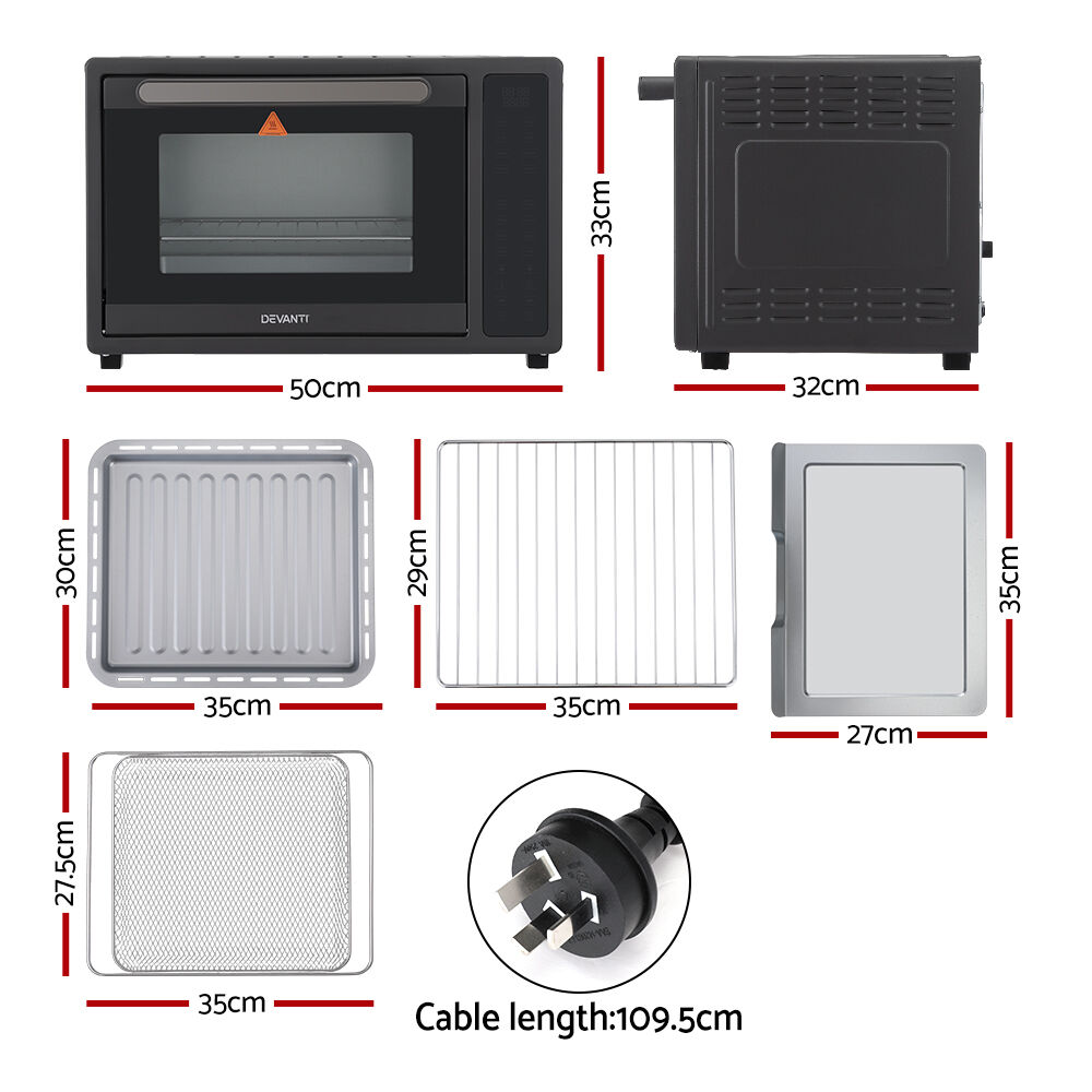 $153.21Conquer culinary creativity with the Devanti Air Fryer! This powerhouse boasts a massive 32L capacity, perfect for family feasts or meal prepping. Effortlessly choose from 16 pre-programmed settings for everything from crispy fries to perfectly roasted vegetables. 360 air circulation ensures even cooking and delicious results, while the adjustable temperature range (35?-200?) and 90-minute timer allow for precise control over your cooking. Keep an eye on your food with the built-in light.The intuitive sensor touch control panel and cool-touch handle offer user-friendly operation, while the non-stick coating pan and heat shield vent prioritize safety and convenience. This air fryer comes complete with a bonus accessory kit, including an air fry basket, drip tray, oven rack, and crumb tray, providing versatility for all your air frying needs.