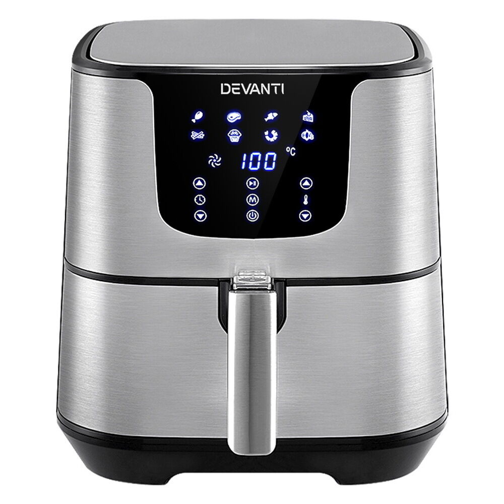 $88.35With its stunning and sleek stainless steel exterior, our Devanti Air Fryer turns the ordinary into the extraordinary. And that goes too for its exceptional cooking abilities. With its innovative air frying technology and 1700W of power, your cooking is done efficiently and thoroughly with less odours. Better still, all the wonderful cooking is done without a single drop of oil and yet is as delicious and sumptuous as traditional methods. In fact, foods cooked in in our air fryer have up to 80% less fat than deep-fried foods. This model has an all-in-one design and does not only fry food, but also roasts, grills and bakes. Just set in the cooking mode (up to eight to choose from) or time (up to 60 minutes) and temperature on the easy-to-use LCD touch controls, then leave all the hard work to the air fryer. Other great features include an auto shut-off function, non-stick pan and heat shield vent for good air circulation. The air fryer has a large 7L capacity making it suitable for most families. Most importantly, the components are dishwasher-safe, which makes the cleaning up process as easy as the cooking process.