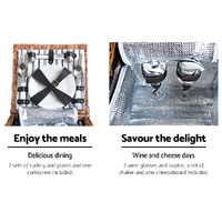 Made from quality willow with PU leather straps and cotton linen lining, this sensational 2 person picnic basket is designed for picnic fun. With a built-in thermally-insulated cooler bag, the basket will keep the food and drinks cooler for a longer time. 2 sets of cutlery are included for 2 people to enjoy an afternoon of outdoor fun. Also, the package consists of a large colour matching blanket. This 2 person picnic basket is perfect for the races, harvest picnics, grape grazing events, Christmas and summer gatherings! You'll be surprised how often it will be used.