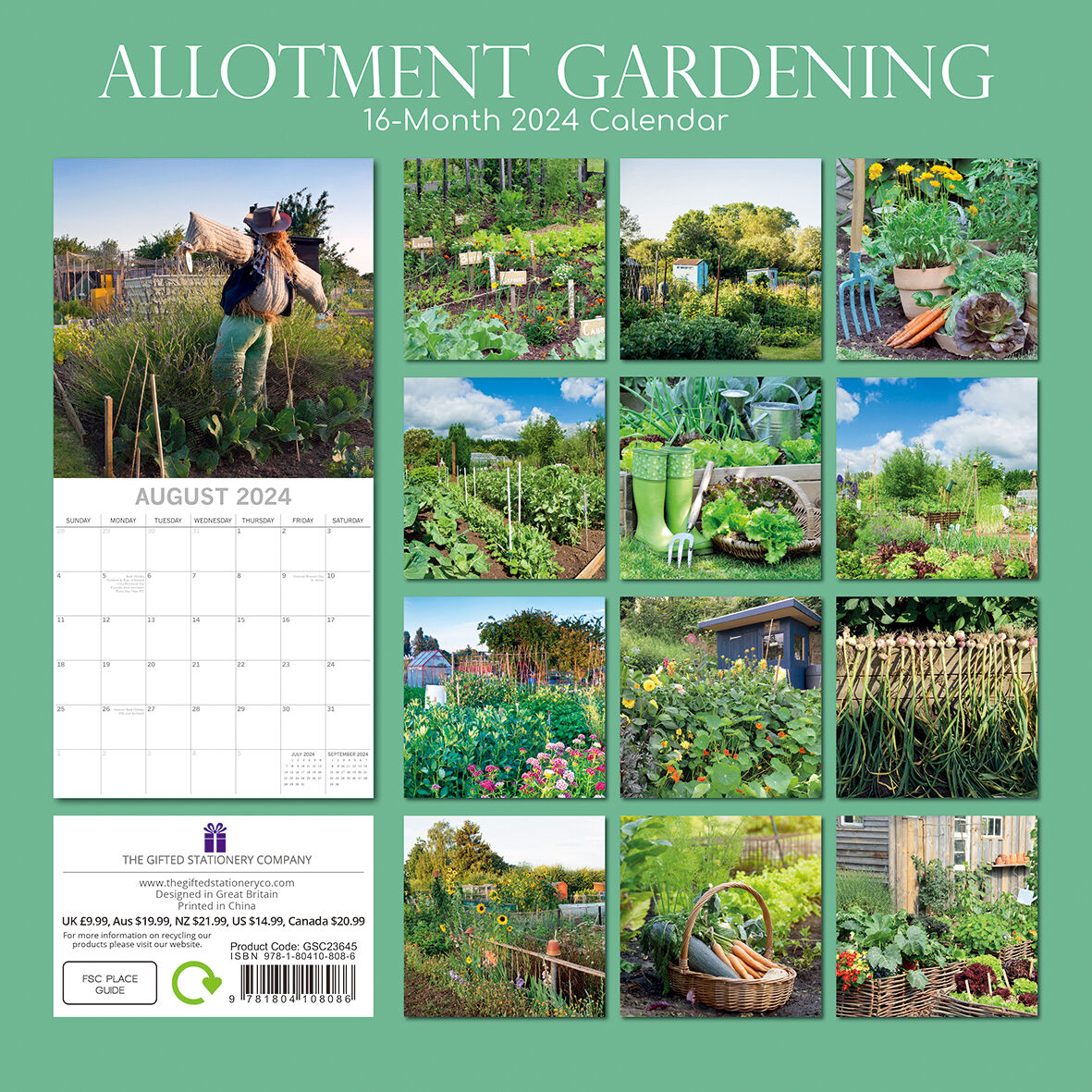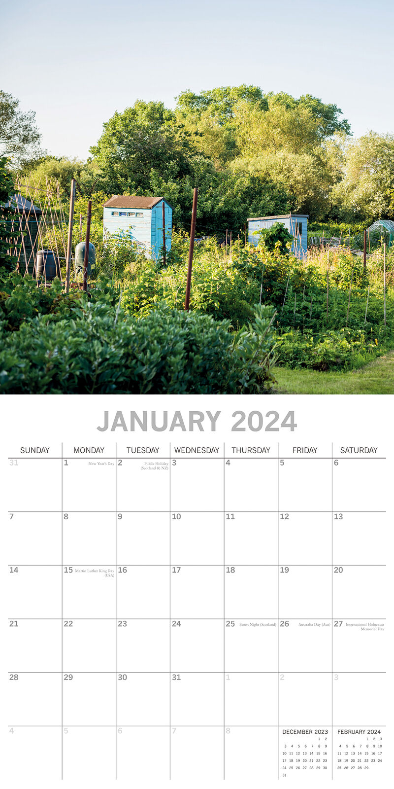 Allotment Gardening - 2024 Square Wall Calendar 16 Months Floral Planner Gift