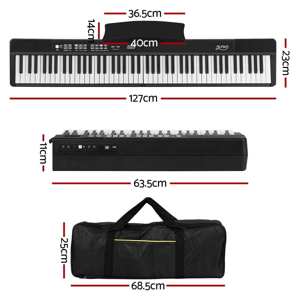 Do you love music? Do you want to spend your day playing and singing your favourite songs? Let the Alpha Electric Keyboard help to realize your musical aspirations. With 88 touch-sensitive keys, the Alpha Keyboard enables you to discover a whole new world of music. Some of these exceptional built-in features include: 128 rhythms, 128 timbres, 80 demo songs, various effects controls, Bluetooth connection, and much more. With a MIDI-USB function, you can plug and play to other devices or computers. With various inputs for microphone and headphones as well as speaker outputs, the Alpha Keyboard allows you to record and playback your music for all to hear. Best of all, the keyboard has a convenient folding design so you can store it away with ease. Your package also includes a microphone and a sustain pedal. Cultivate your love of music with an Electric Keyboard from Alpha.