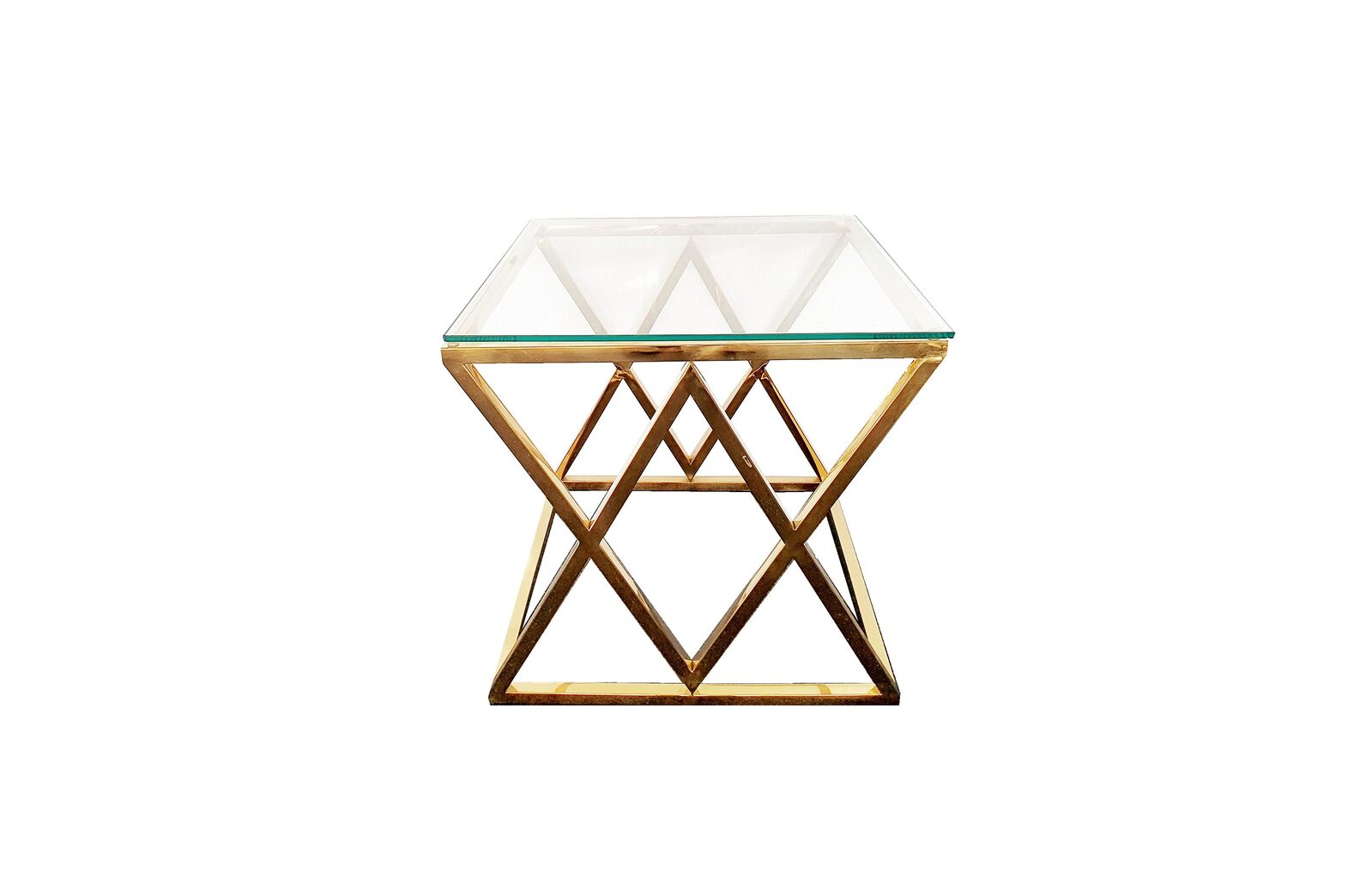 The Alsea Side Table is a sleek and modern piece of furniture featuring a tempered glass top or white marble and a polished steel frame finished in Gold, Silver, or Metal Black. The table is designed to add elegance to any living room or lounge area. Tops options include Tempered Clear Glass, Tempered Black Glass, or White Marble. Dimensions: 55cm x 55cm x 55cm.