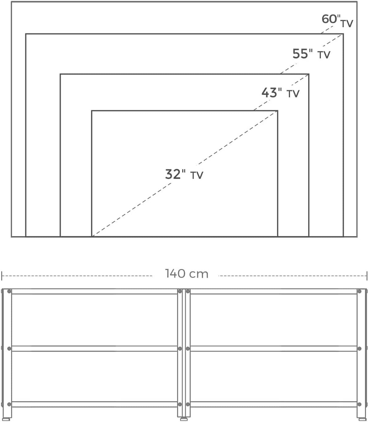 Not Only For The TV: This cabinet has a sturdy steel frame and two shelves made of high-quality wood chipboard, each can hold up to 60 kg, the metal mesh shelf at the bottom up to 10 kg. Televisions, dvds and game consoles are in good hands.