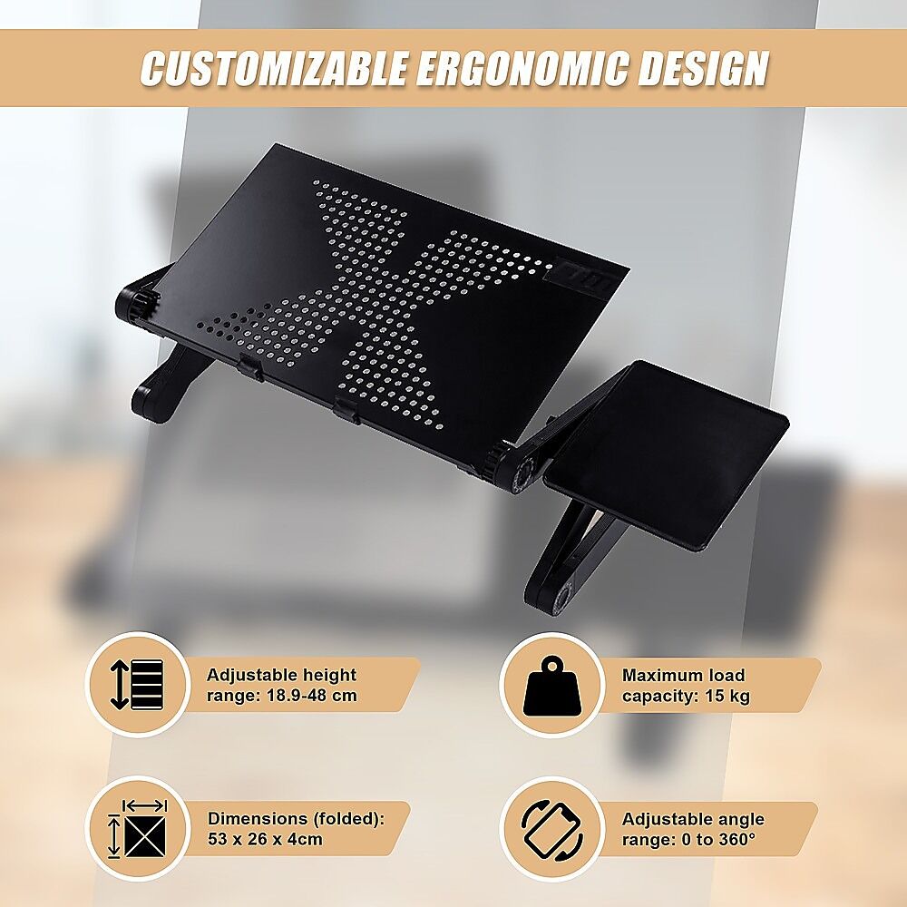 That's not all. You can adjust not only the height but also the angle up to 360 degrees for your complete comfort as you work or study. Three knobs on each leg allow you to customise the desk for every member of your family. You can even tuck the legs under practically any piece of furniture to save space. Portable and versatile, this desk is easy to move from room to room for a multitude of uses. If you work from home occasionally or full-time, this laptop desk is a must. Get yours today!
