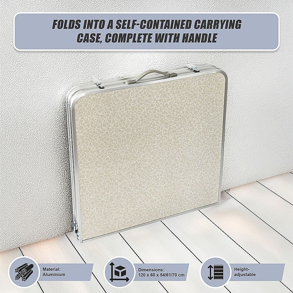 This folding table provides extra space for four guests but folds away neatly after the party's over. When folded up, its compact footprint takes up little space in your wardrobe or other storage spaces. A great gift for camping fans, young people in their first apartment, or families with young kids or a great accessory for those who love entertaining, this table is something you won't want to do without. Get yours today!