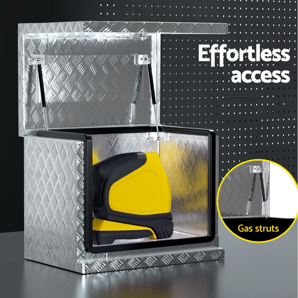 $234.05Working on-site throughout the week? Keep your tools secure and locked away with the Giantz Aluminium Toolbox. Made from heavy-duty aluminium with a stainless-steel piano hinge, nothing is going to disturb your tools. The 2.3mm thick checker plate design is aesthetically pleasing as well as non-slip. The durable rubber seal and fully welded seams keep the box weather and dust-resistant - nothing will get into your toolbox, no matter the weather or location. Heavy-duty T-handle locks will keep your tools secure, and we've included two keys for your convenience. The lift-up gas struts and open-top design allow for effortless access. Don't worry about your tools while you're on the job. Get yourself a Giantz Aluminium Toolbox today.