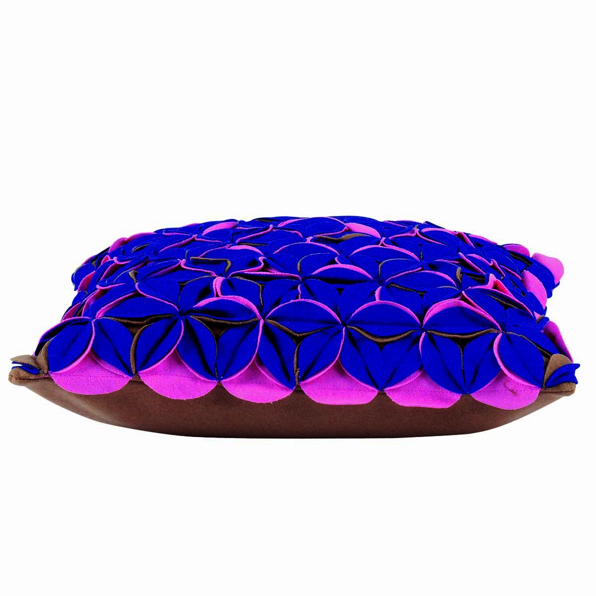 Amelie Royal Blue & Pink Felt Petals Cushion Cover