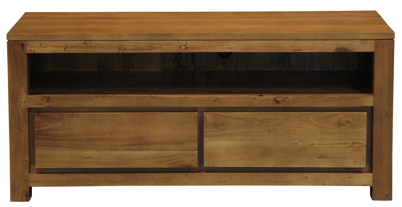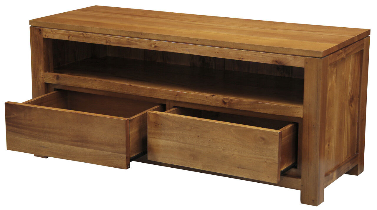 $479.39The Amsterdam Entertainment Unit captures the warmth of treasured moments and the coziness of intimate evenings. Made from solid mahogany timber, it carries the whispers of timeless tales. Two spacious drawers offer a sanctuary for your beloved collections and memories, just beneath the space that holds your world of visual stories.