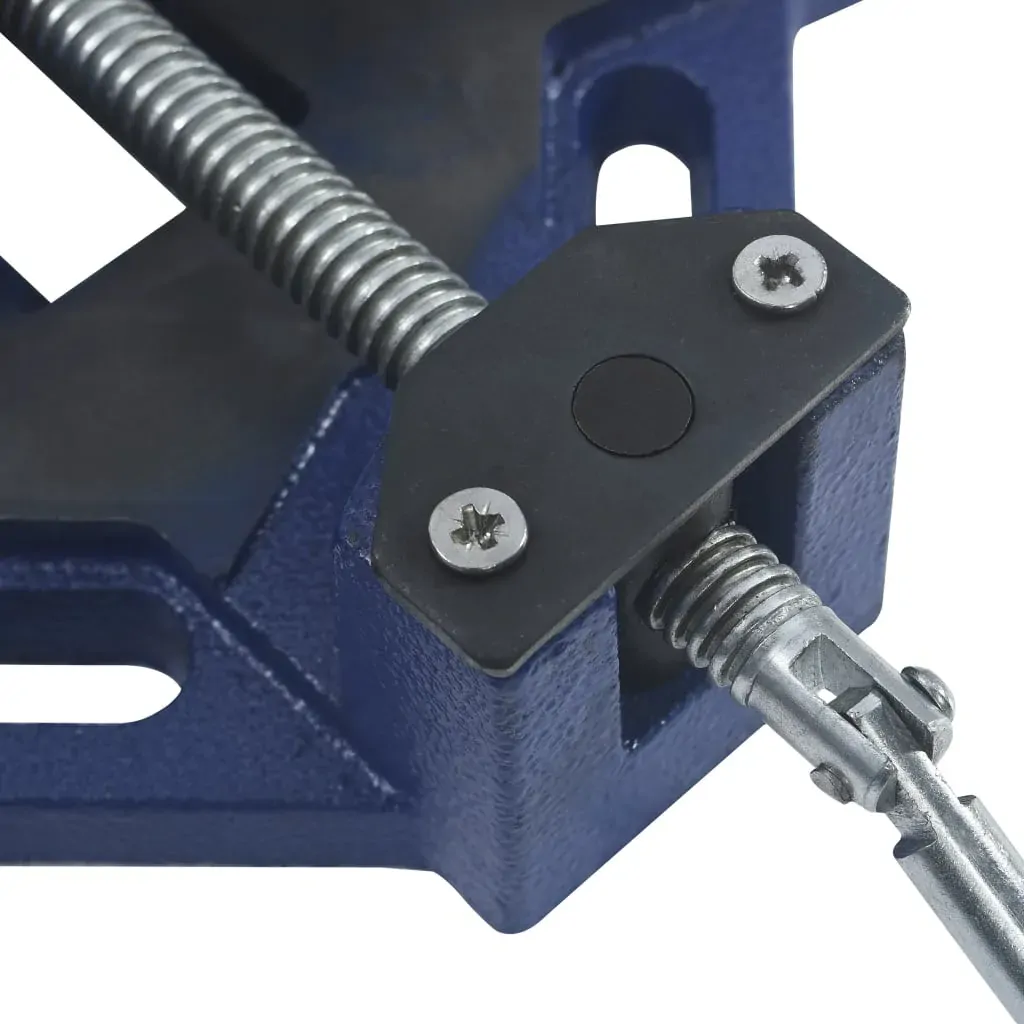 This angle clamp can be used to firmly secure workpieces for precise metalwork. Thanks to its excellent clamping and locking force, the vice will not budge during drilling or milling. Hardened jaws ensure a guaranteed hold with every machining operation. This right angle clamp will be helpful when the workpiece has a 90-degree angle; and the swiveling spindle and clamping head enable materials of different cross-sections to be clamped firmly and securely. This unit also features a stable base, which can be easily mounted to your workbench. This corner vice is indispensable for exact quality and precise execution for drilling, welding, milling, cutting and grinding.