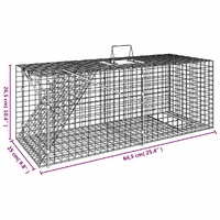 This animal trap is perfect for getting rid of any unwanted visitors without harming the animal. Sturdy material: The live catch trap is made of sturdy iron wire mesh. Iron is a strong and hard material. It's a solid favourite in industrial and furniture construction. In addition, galvanisation provides better protection against corrosion and is useful for products that'll be used outdoors as well as in harsh environments.Safe and humane: The single door allows animals to fully enter the trap before closing to ensure higher catch rates. Small mesh holes are designed to prevent escapes. The rat cage trap with smooth internal edges prevents injuries to animals.Convenient design: With handy dimensions, this humane mouse trap can be easily operated by one person. In addition, a carrying handle helps you avoid contact with the animal during transportation.Wide applications: This humane rat trap is ideal for mice, squirrels, chipmunks, voles, shrews, skunks, rabbits, weasels and similar-sized animals.