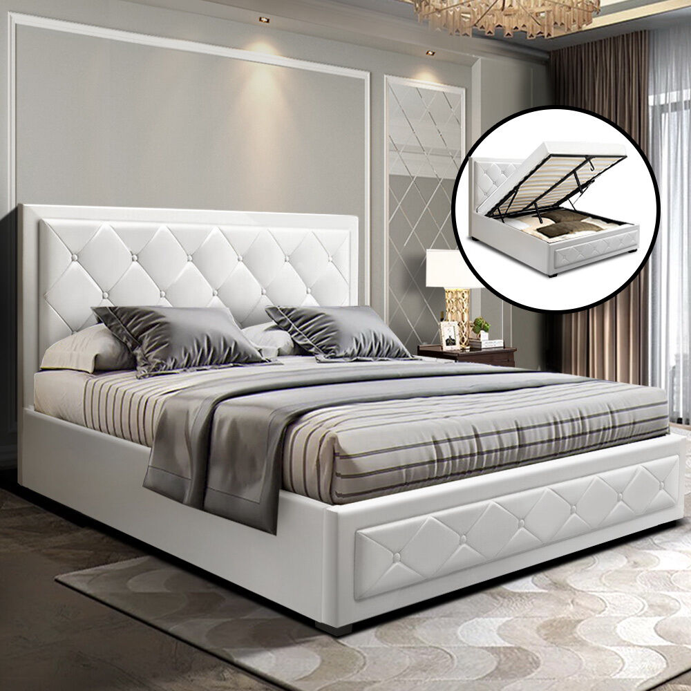 $248.15From first glance, our contemporary Artiss Tiyo Gas Lift Bed Frame looks phenomenal. The premium faux linen tufted headboard and sides all exude fine craftsmanship and luxury. But there is more. Lift up the bed base and you will find ample storage space under the wooden arched slat base. The gas lift system and hand strap enable you to effortlessly lift the bed to store items you wish to hide away until a later date. The wooden arched slat base is also designed to flex appropriately so that it can better distribute the weight exerted on it and stop disturbances in the night if your partner likes to move about. Enjoy your wonderful sleep in more ways than one with our innovative Tiyo Gas Lift Bed Frame, it is definitely brains and beauty!