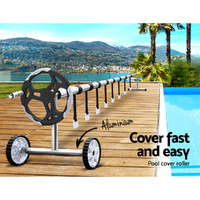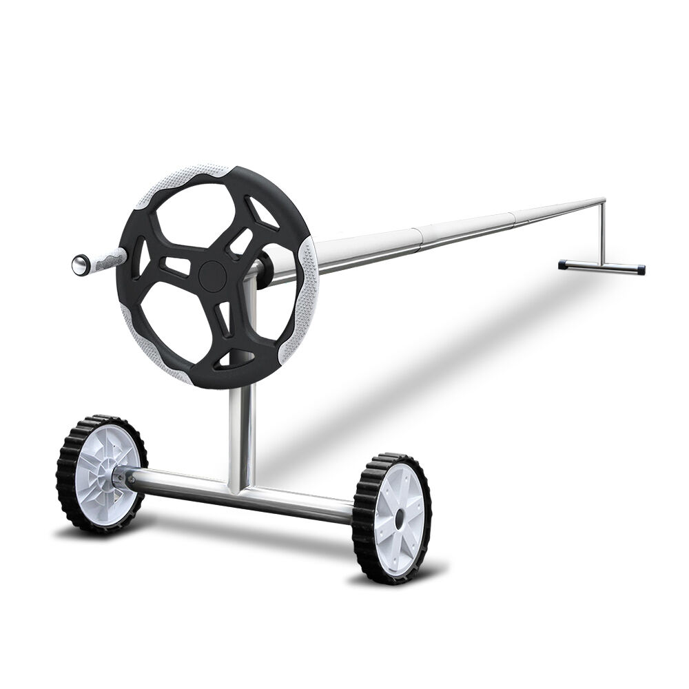 Made of sturdy aluminium construction with full adjustability, this pool roller is suitable for pool cover with a width between 2.4-5.55m. Equipped with premium anodized aluminium alloy stands with plastic wheels for maximum portability and convenience. With an exclusive non-slip spinning wheel design to roll up pool covers for easy operation. This pool roller will help to keep the pool clean at all times with little effort.