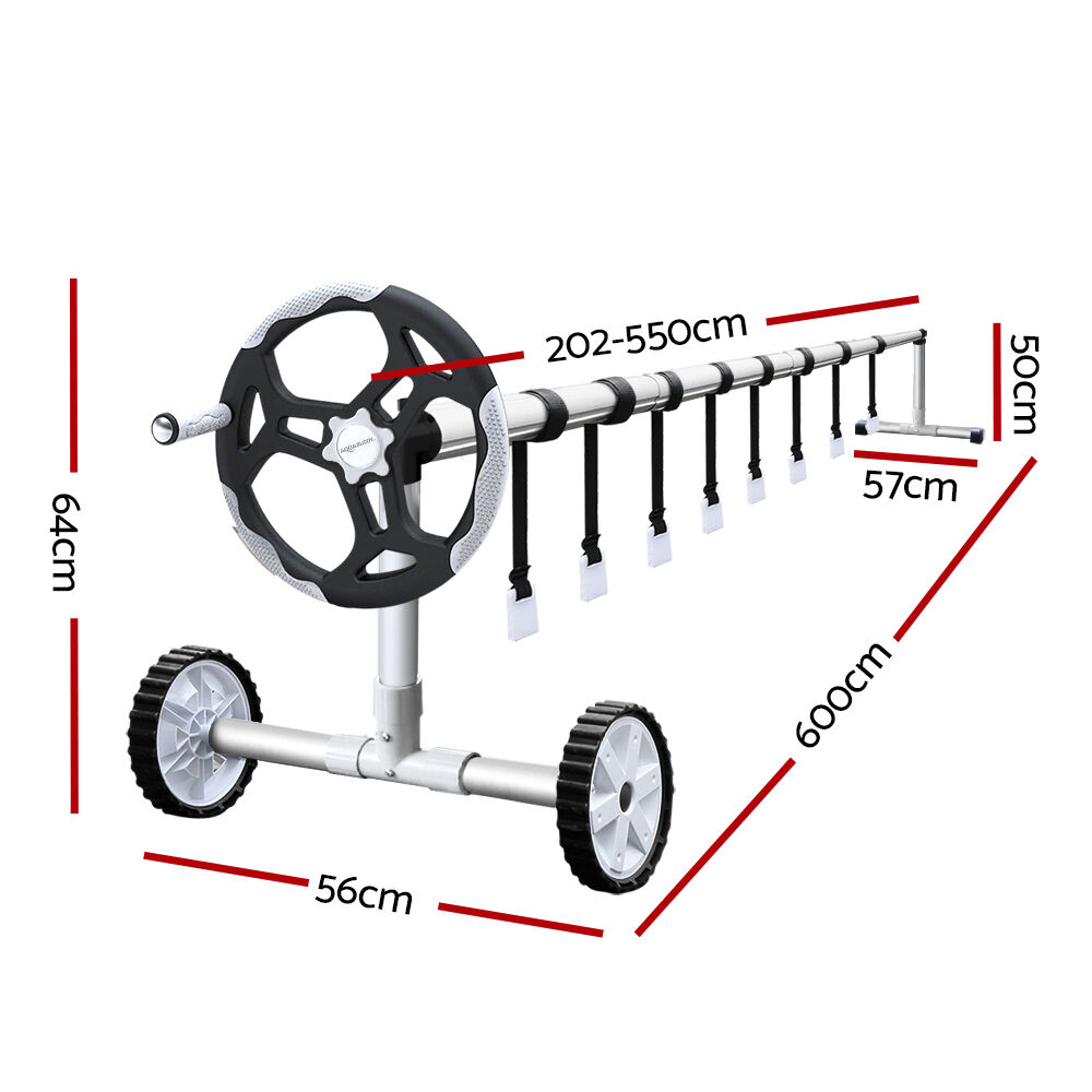 Made of sturdy aluminium construction with full adjustability, this pool roller is suitable for pool cover with a width between 2.4 - 5.55m. Equipped with premium anodized aluminium alloy stands with plastic wheels for maximum portability and convenience. With an exclusive non-slip spinning wheel design to roll up pool covers for easy operation. This pool roller will help to keep the pool clean at all times with little effort.