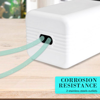 The dual air outlets allow you to create a more even airflow and maximise the effectiveness in spreading oxygen. Thanks to the Cube-Shaped design, the compressor of this air pump is very quiet and the new design added rubber feet to keep the vibration level to a minimum. The simple, yet efficient design also saves you precious space and also increases the service life.