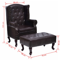 Relaxing on this antique brown finish Chesterfield chair is a pure pleasure and comfort. The elegant design can fit into any setting of the household. The typical buttoning and polished wooden feet match your classic chesterfield furniture. This chair is draped with beautiful, high-quality, easy-to-clean artificial leather. It is thickly upholstered with durable material for your comfort. Solid wood legs contribute to the sturdy construction.