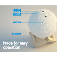 Enjoy the beautiful night sky with the latest Devanti Aroma Diffuser. Gorgeous and functional, the device acts as a diffuser, humidifier, purifier and nightlight so you can sleep in total peace and comfort. Feel the light of the moon with our unique, realistic design featuring craters and pockmarks. Use the easy touch switch to activate two types of mist (continuous or intermittent) and three types of mood light. Never worry about your diffuser drying out with the waterless auto-off feature - not that you'll need it with it's large 880ml capacity. Best of all, the diffuser is energy efficient and works quietly to bring you peaceful dreams. Shop today for your little piece of the moon.