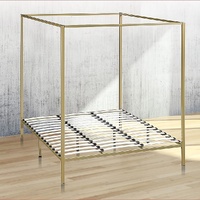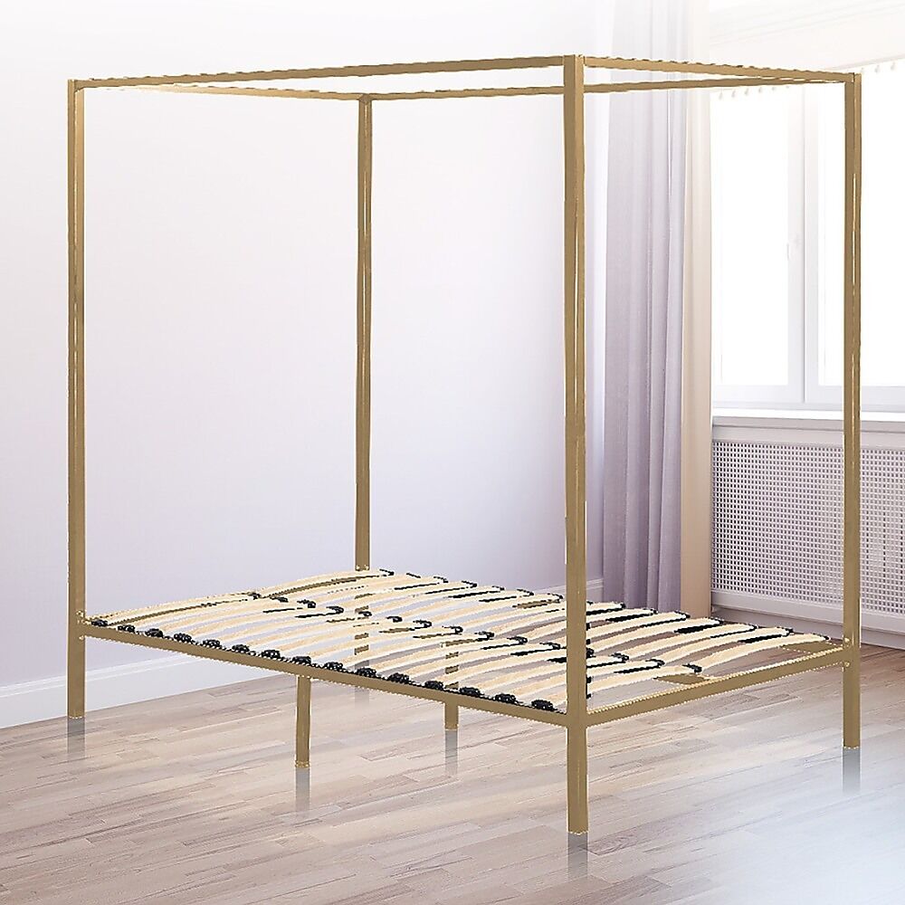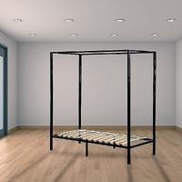 $266.01This classic four poster bed has been designed to bring splendour to your bedroom. It’s simple, yet stylish design suits any setting, while still maintaining an impressive appearance and size.The bed’s sleek black frame is trendy and modern, making it a perfect choice for the 21st Century home. But if you prefer a more ‘old-style’, romantic look, its modest design means that it is easily dressed with drapes in order to achieve the style you want. What’s more, the frame’s neutral black allows it to fit in with any colour scheme - Versatility at its best.As it is Double Size, the bed has plenty of space, providing the luxurious comfort that you deserve after a long day. The bed’s fifteen wooden slats provide flawless support for a Double mattress, without the need for any additional foundation.It is also an ideal choice for those who want a sturdy four-poster bed that will last. It’s strong, metal frame and side rails guarantee that it is both stable and durable.