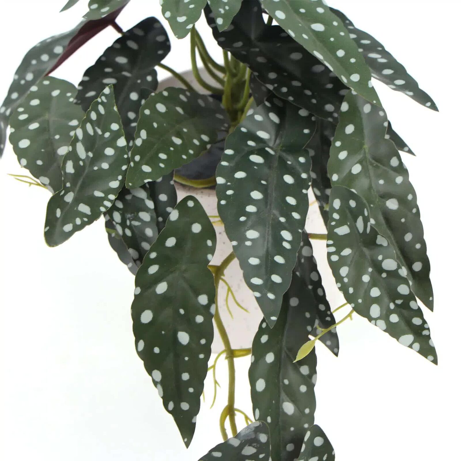 Bergonia is a genus of about 1,300 species of annuals, perennials, shrubs and climbers. Theyre known for their thick stems and colourful foliage, and theyre usually grown for their beautiful flowers. Making them a wonderful decorative plant. However, they can be a bit picky about light and water hence we created a stunning faux alternative.
