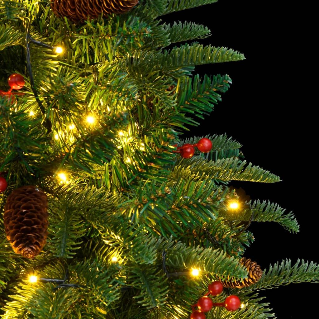 Comes with beautiful holiday decorations, this artificial hinged Christmas tree with LEDs will be eye-catching in the evening and create just the right atmosphere for this Christmas. Hinged construction: The Christmas tree has a hinged construction, so the branches will automatically fold down at the right angle. This will make it much easier to put up the tree in the perfect shape and will save you time as well.8 lighting modes: The LED string light has 8 different lighting effects (combination, in wave, sequential, slow glow, chasing/running water, slow fade, twinkle/flash, and steady on). You can switch the lighting modes by pressing the button on the USB to create different holiday atmospheres.Lifelike PE tips: The artificial Christmas tree has realistic PE tips, made by injection moulding, giving the tree a more natural appearance.Beautiful decoration: The modern Christmas tree has cones and red berries on it, creating a lovely natural look.Sturdy stand: The metal stand provides your Xmas tree with optimal sturdiness and stability. Good to know:We recommend setting aside 30-45 minutes after assembly to properly shape the tree by peeling back the branches and pulling the tips apart to give the branches a more full-bodied look.The product has a USB connector that requires a certified 5V USB power source (not included).Please ensure that the USB connection is plugged in a dry environment.You can customise your Christmas tree by hanging the LED string light yourself, as they are provided separately.