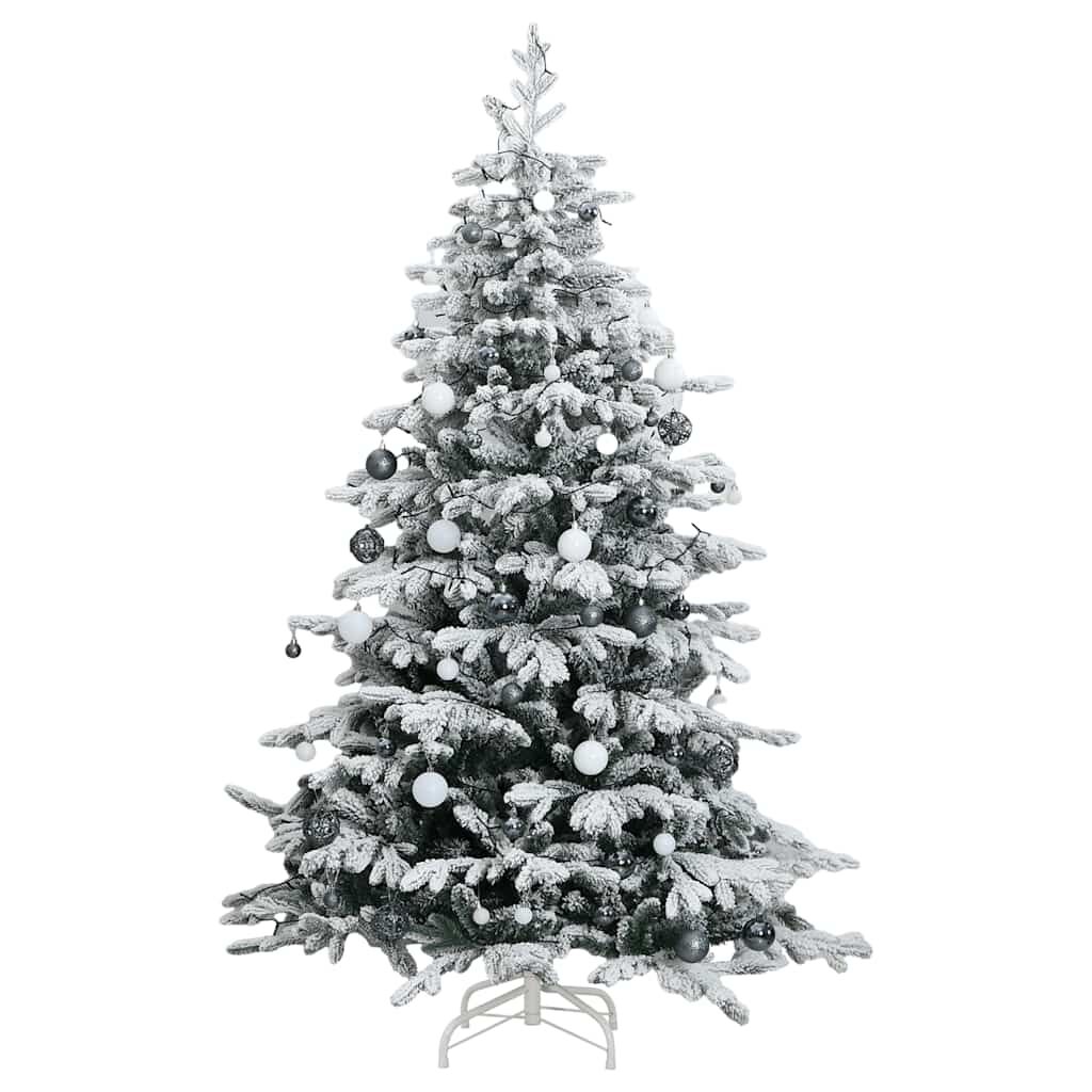 Comes with beautiful holiday decorations, this artificial hinged Christmas tree with LEDs will be eye-catching in the evening and create just the right atmosphere for this Christmas. Hinged construction: The Christmas tree has a hinged construction, so the branches will automatically fold down at the right angle. This will make it much easier to put up the tree in the perfect shape and will save you time as well.8 lighting modes: The LED string light has 8 different lighting effects (combination, in wave, sequential, slow glow, chasing/running water, slow fade, twinkle/flash, and steady on). You can switch the lighting modes by pressing the button on the USB to create different holiday atmospheres.Lifelike PE tips: The artificial Christmas tree has realistic PE tips, made by injection moulding, giving the tree a more natural appearance.Beautiful decoration: The modern Christmas tree is decorated with artificial white snow, creating an attractive look. These shiny Christmas balls are available in three different sizes, which bring more possibilities for your DIY decoration.Sturdy stand: The metal stand provides your Xmas tree with optimal sturdiness and stability. Good to know:We recommend setting aside 30-45 minutes after assembly to properly shape the tree by peeling back the branches and pulling the tips apart to give the branches a more full-bodied look.The product has a USB connector that requires a certified 5V USB power source (not included).Please ensure that the USB connection is plugged in a dry environment.