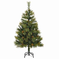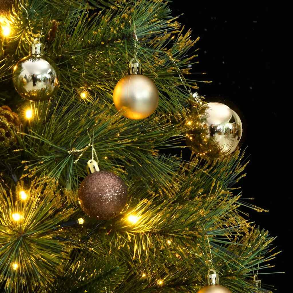 Comes with beautiful holiday decorations, this artificial hinged Christmas tree with LEDs will be eye-catching in the evening and create just the right atmosphere for this Christmas. Hinged construction: The Christmas tree has a hinged construction, so the branches will automatically fold down at the right angle. This will make it much easier to put up the tree in the perfect shape and will save you time as well.8 lighting modes: The LED string light has 8 different lighting effects (combination, in wave, sequential, slow glow, chasing/running water, slow fade, twinkle/flash, and steady on). You can switch the lighting modes by pressing the button on the USB to create different holiday atmospheres.Lifelike PE tips: The Christmas decoration has realistic PE tips, made by injection moulding, giving the tree a more natural appearance.Beautiful decoration: The modern Christmas tree is decorated with cones, creating an attractive look. These shiny Christmas balls are available in three different sizes, which bring more possibilities for your DIY decoration.Sturdy stand: The metal stand provides your Xmas tree with optimal sturdiness and stability. Good to know:We recommend setting aside 30-45 minutes after assembly to properly shape the tree by peeling back the branches and pulling the tips apart to give the branches a more full-bodied look.The product has a USB connector that requires a certified 5V USB power source (not included).Please ensure that the USB connection is plugged in a dry environment.