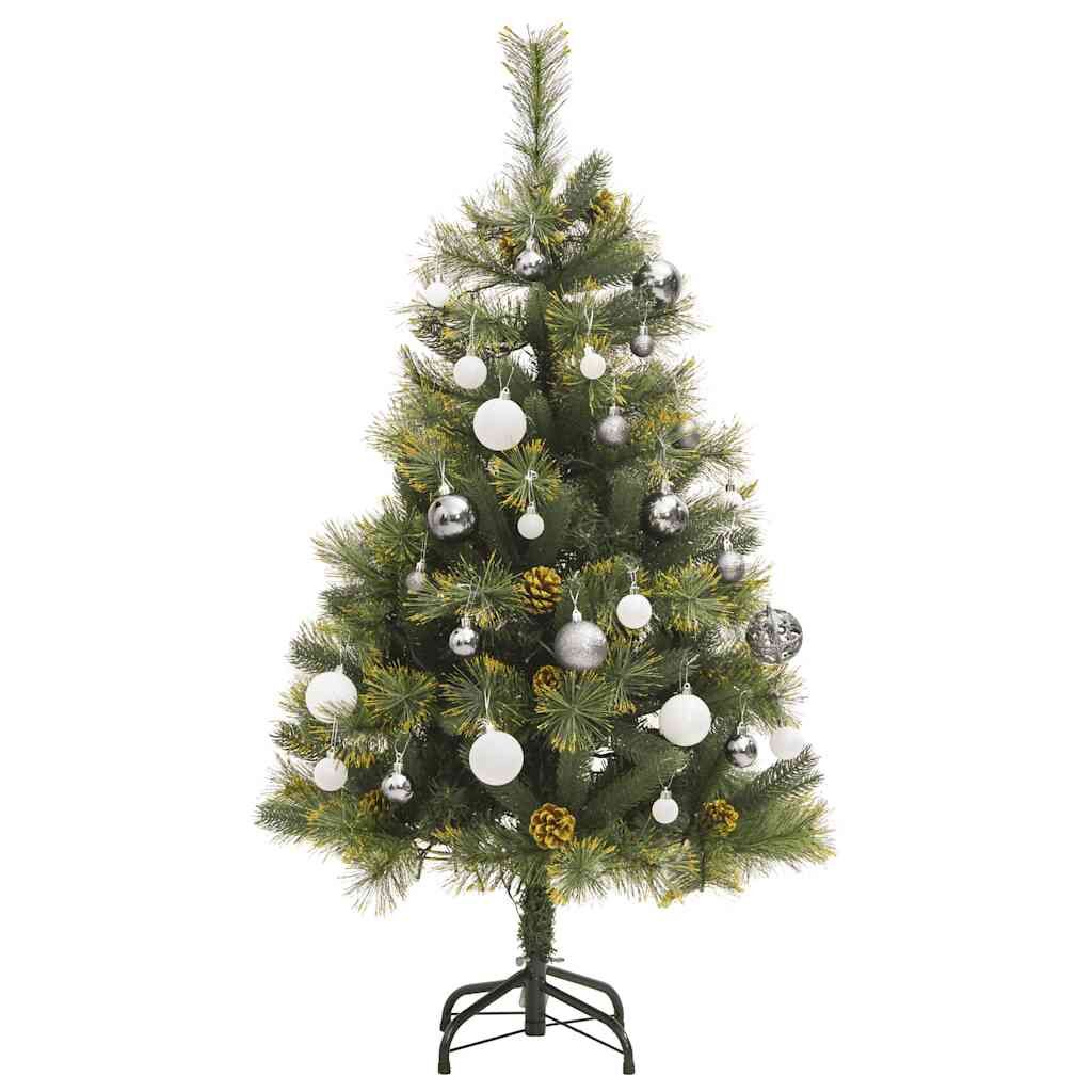 Comes with beautiful holiday decorations, this artificial hinged Christmas tree with LEDs will be eye-catching in the evening and create just the right atmosphere for this Christmas. Hinged construction: The Christmas tree has a hinged construction, so the branches will automatically fold down at the right angle. This will make it much easier to put up the tree in the perfect shape and will save you time as well.8 lighting modes: The LED string light has 8 different lighting effects (combination, in wave, sequential, slow glow, chasing/running water, slow fade, twinkle/flash, and steady on). You can switch the lighting modes by pressing the button on the USB to create different holiday atmospheres.Lifelike PE tips: The Christmas decoration has realistic PE tips, made by injection moulding, giving the tree a more natural appearance.Beautiful decoration: The modern Christmas tree is decorated with cones, creating an attractive look. These shiny Christmas balls are available in three different sizes, which bring more possibilities for your DIY decoration.Sturdy stand: The metal stand provides your Xmas tree with optimal sturdiness and stability. Good to know:We recommend setting aside 30-45 minutes after assembly to properly shape the tree by peeling back the branches and pulling the tips apart to give the branches a more full-bodied look.The product has a USB connector that requires a certified 5V USB power source (not included).Please ensure that the USB connection is plugged in a dry environment.