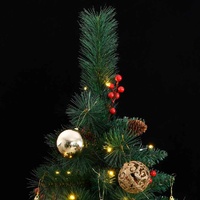 Comes with beautiful holiday decorations, this artificial hinged Christmas tree with LEDs will be eye-catching in the evening and create just the right atmosphere for this Christmas. Hinged construction: The Christmas tree has a hinged construction, so the branches will automatically fold down at the right angle. This will make it much easier to put up the tree in the perfect shape and will save you time as well.8 lighting modes: The LED string light has 8 different lighting effects (combination, in wave, sequential, slow glow, chasing/running water, slow fade, twinkle/flash, and steady on). You can switch the lighting modes by pressing the button on the USB to create different holiday atmospheres.Beautiful decoration: The modern Christmas tree is decorated with cones and berries, creating an attractive look. These shiny Christmas balls are available in three different sizes, which bring more possibilities for your DIY decoration.Sturdy stand: The metal stand provides your Xmas tree with optimal sturdiness and stability.Economical choice: You can reuse the holiday ornament every year, which is a cost-effective option compared to getting a real tree. Good to know:We recommend setting aside 30-45 minutes after assembly to properly shape the tree by peeling back the branches and pulling the tips apart to give the branches a more full-bodied look.The product has a USB connector that requires a certified 5V USB power source (not included).Please ensure that the USB connection is plugged in a dry environment.