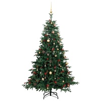 Comes with beautiful holiday decorations, this artificial hinged Christmas tree with LEDs will be eye-catching in the evening and create just the right atmosphere for this Christmas. Hinged construction: The Christmas tree has a hinged construction, so the branches will automatically fold down at the right angle. This will make it much easier to put up the tree in the perfect shape and will save you time as well.8 lighting modes: The LED string light has 8 different lighting effects (combination, in wave, sequential, slow glow, chasing/running water, slow fade, twinkle/flash, and steady on). You can switch the lighting modes by pressing the button on the USB to create different holiday atmospheres.Lifelike PE tips: The artificial Christmas tree has realistic PE tips, made by injection moulding, giving the tree a more natural appearance.Beautiful decoration: The modern Christmas tree has cones and red berries on it, creating a lovely natural look. These shiny Christmas balls are available in three different sizes, which bring more possibilities for your DIY decoration.Sturdy stand: The metal stand provides your Xmas tree with optimal sturdiness and stability. Good to know:We recommend setting aside 30-45 minutes after assembly to properly shape the tree by peeling back the branches and pulling the tips apart to give the branches a more full-bodied look.The product has a USB connector that requires a certified 5V USB power source (not included).Please ensure that the USB connection is plugged in a dry environment.