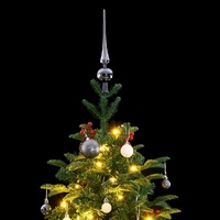 Comes with beautiful holiday decorations, this artificial hinged Christmas tree with LEDs will be eye-catching in the evening and create just the right atmosphere for this Christmas. Hinged construction: The Christmas tree has a hinged construction, so the branches will automatically fold down at the right angle. This will make it much easier to put up the tree in the perfect shape and will save you time as well.8 lighting modes: The LED string light has 8 different lighting effects (combination, in wave, sequential, slow glow, chasing/running water, slow fade, twinkle/flash, and steady on). You can switch the lighting modes by pressing the button on the USB to create different holiday atmospheres.Lifelike PE tips: The artificial Christmas tree has realistic PE tips, made by injection moulding, giving the tree a more natural appearance.Beautiful decoration: The modern Christmas tree has cones and red berries on it, creating a lovely natural look. These shiny Christmas balls are available in three different sizes, which bring more possibilities for your DIY decoration.Sturdy stand: The metal stand provides your Xmas tree with optimal sturdiness and stability. Good to know:We recommend setting aside 30-45 minutes after assembly to properly shape the tree by peeling back the branches and pulling the tips apart to give the branches a more full-bodied look.The product has a USB connector that requires a certified 5V USB power source (not included).Please ensure that the USB connection is plugged in a dry environment.