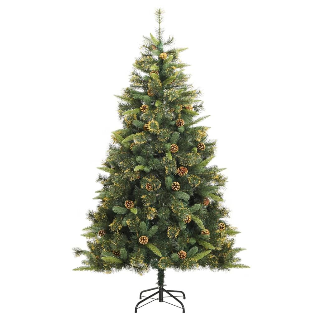 This beautiful artificial hinged Christmas tree is very lifelike in its shape and appearance and is meant to create just the right atmosphere for this Christmas. Hinged construction: The Christmas tree has a hinged construction, so the branches will automatically fold down at the right angle. This will make it much easier to put up the tree in the perfect shape and will save you time as well.Lifelike PE tips: The Christmas decoration has realistic PE tips, made by injection moulding, giving the tree a more natural appearance.Sturdy stand: The metal stand provides your artificial Christmas tree with optimal sturdiness and stability.Beautiful decoration: The Christmas ornament is mixed with pine needles and cones, creating a lovely natural look.Economical choice: You can reuse the holiday ornament every year, which is a cost-effective option compared to getting a real tree. Good to know:We recommend setting aside 30-45 minutes after assembly to properly shape the tree by peeling back the branches and pulling the tips apart to give the branches a more full-bodied look.