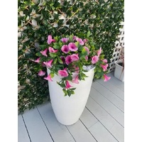 Bring a touch of everlasting beauty to your home or garden with our stunning Artificial Hanging Petunia Basket. Featuring vibrant pink flowers and lush green leaves, this faux floral arrangement adds a burst of color and life to any space without the hassle of maintenance.