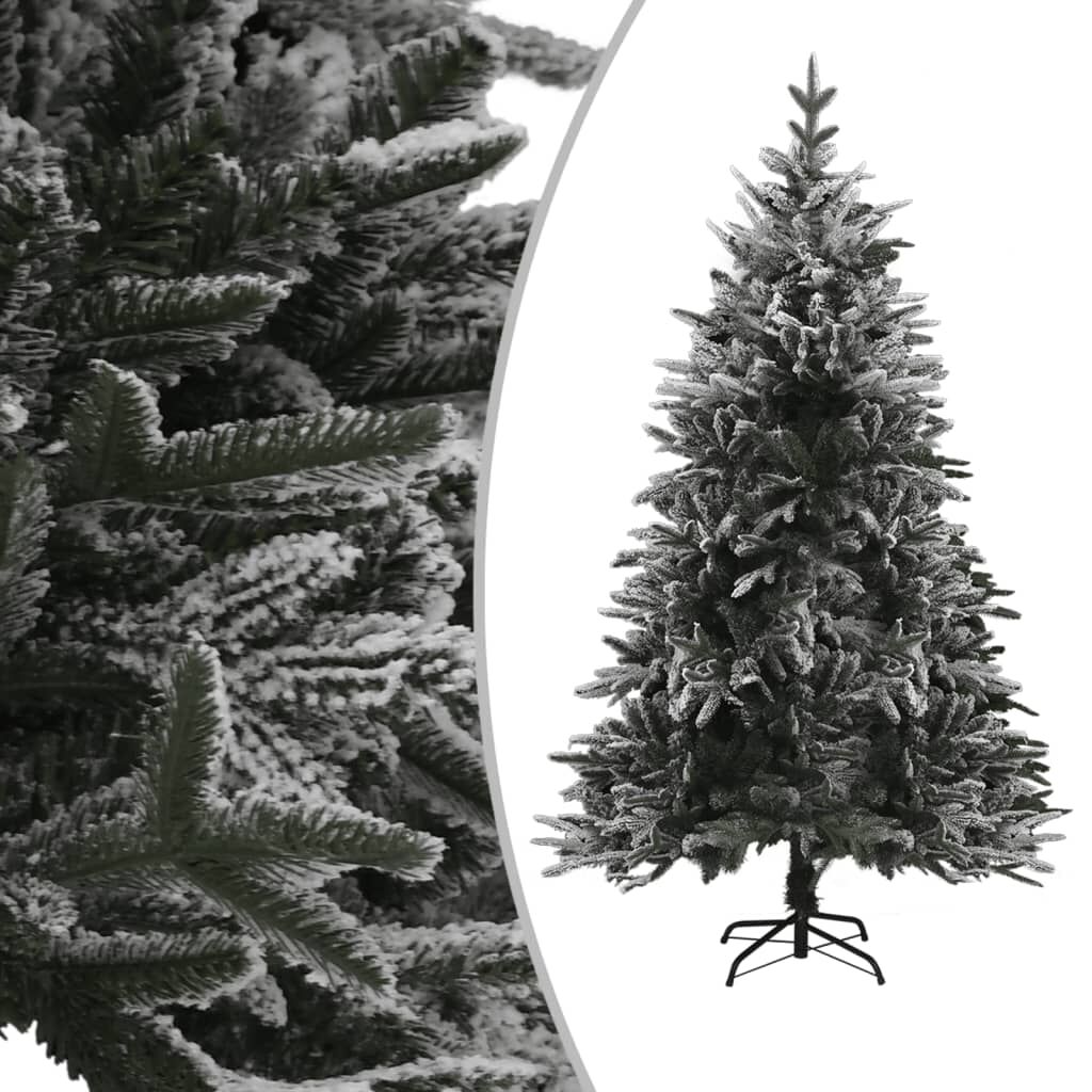 This artificial Christmas tree, with flocked white snow, forms the striking centrepiece of your Christmas decorations. This beautiful Christmas tree with branches made of both PVC and PE, is very lifelike in its shape and appearance. All branches can be aligned which allows you to adjust the tree in the perfect form. The included steel stand provides your tree with optimal stability. Additionally, the Christmas tree can be used again every year, making it a very economical choice compared to a real tree. Featuring energy-efficient LED lights, it lights up beautifully and creates a cosy holiday atmosphere. Note: The product has a USB connector, but the certified 5V USB power source is not included.