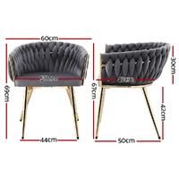 Wine, dine, and entertain guests with our meticulously designed Artiss dining chairs. They make a luxurious addition to any dining space and will make your guests envious of your gorgeous dining ambience. Not just for your dining room, these dining chairs are sure to make a statement in your study room, living room, and dressing room. Their versatility and ultra-modern design make them stand out. Incredibly stylish and sophisticated, our Artiss dining chairs feature inner solid wood construction with plush velvet upholstery and a hand-woven backrest that ensures lasting quality. It comes with solid steel legs with an anti-slip feet pad for ultimate stability and to keep your floors scratch-free. The dining chairs flaunt plush seats made with high-resilience foam that offer incredible comfort and support, and the cushioned back support with comfortable armrests allow you to dine with great comfort. Our dining chairs can hold up to 150kg weight, and their reinforced steel fixings make them super stable and reliable. Our Artiss dining chairs are certainly a big bang for your buck. Bring home this luxurious set of dining chairs without any hesitation.