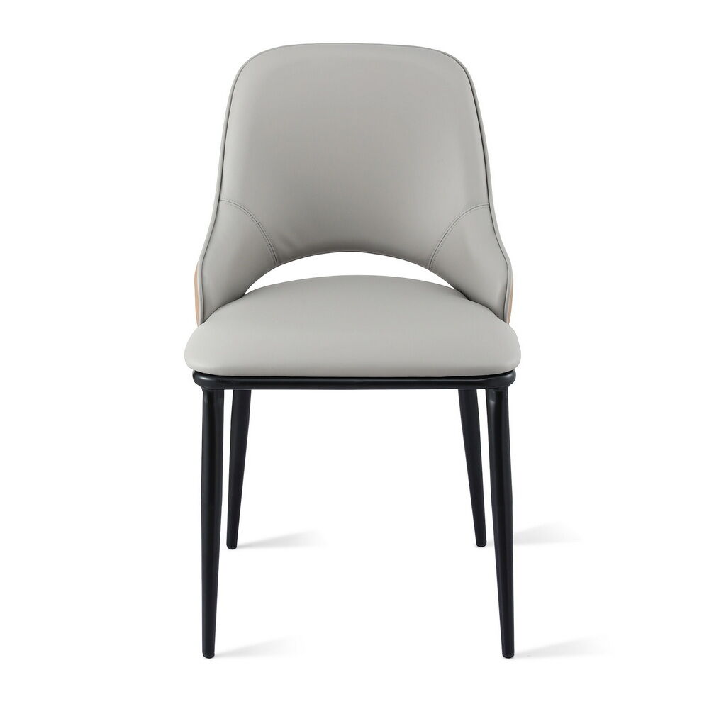 The seat is upholstered in durable PU leather, which is both chic and incredibly easy to maintain. Comfort is key, with an ergonomic curved backrest and a generously padded seat providing great support for relaxed dining or lounging.