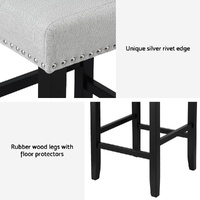 Upgrade your seating with our ergonomic tufted bar stools, perfect for home kitchens, bars, or dining spaces. Each stool boasts a premium faux linen upholstered seat, a decorative silver rivet edge, and a supportive high backrest for unmatched comfort. The thick foam padding ensures a plush seating experience, while the sturdy rubber wood frame delivers reliable strength with a 120kg weight capacity per stool. Anti-slip floor protectors keep your floors scratch-free, and the easy assembly design saves you time. Add elegance and comfort to your space today!